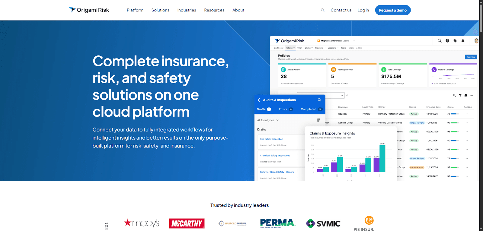 Origami Risk gives insurers a single cloud platform to manage policies, claims, and risk programs without juggling multiple systems. It’s built to streamline work, improve accuracy, and help teams move faster.