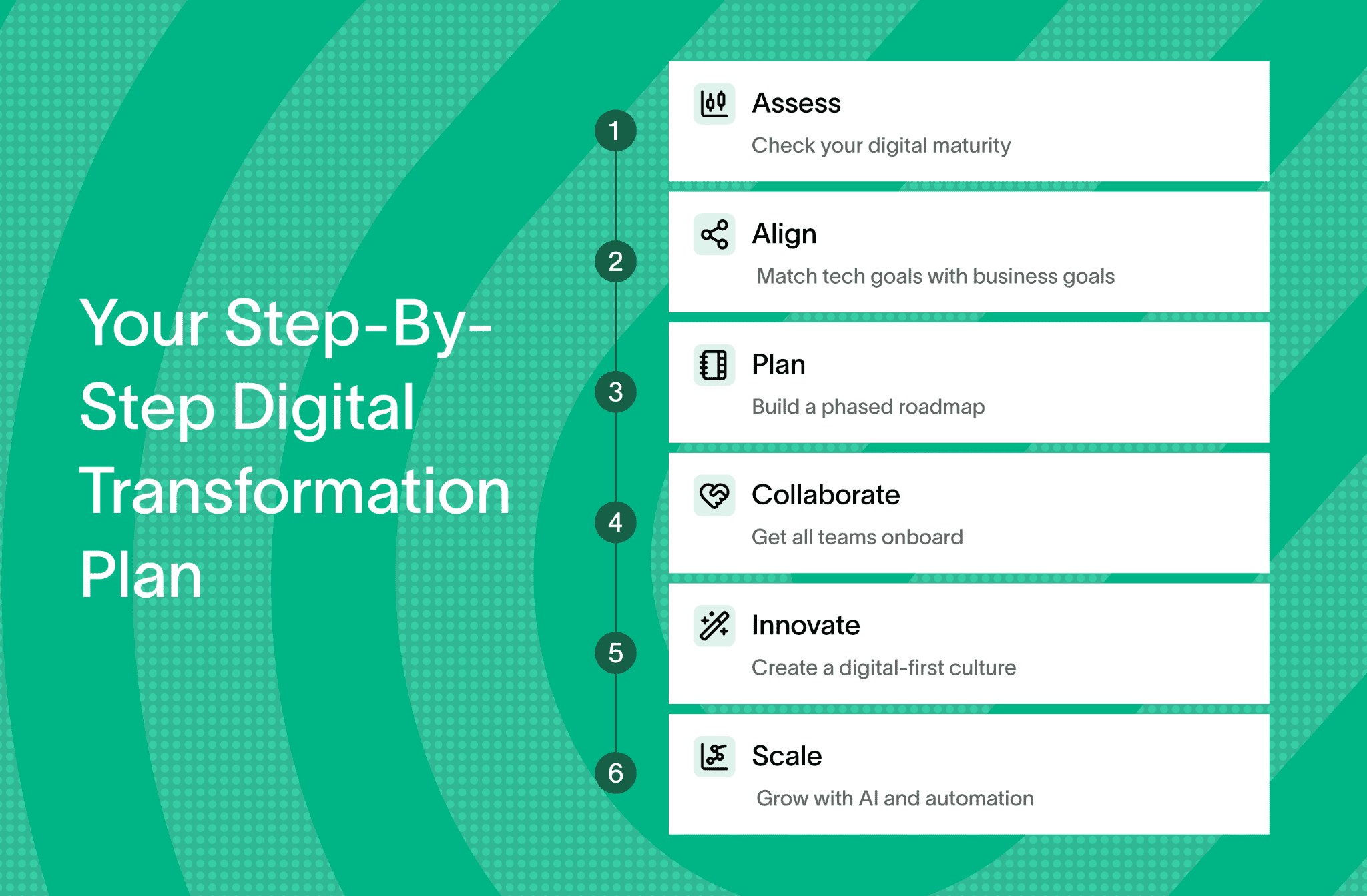 This staged approach keeps risk low and momentum high as you grow your digital capabilities.