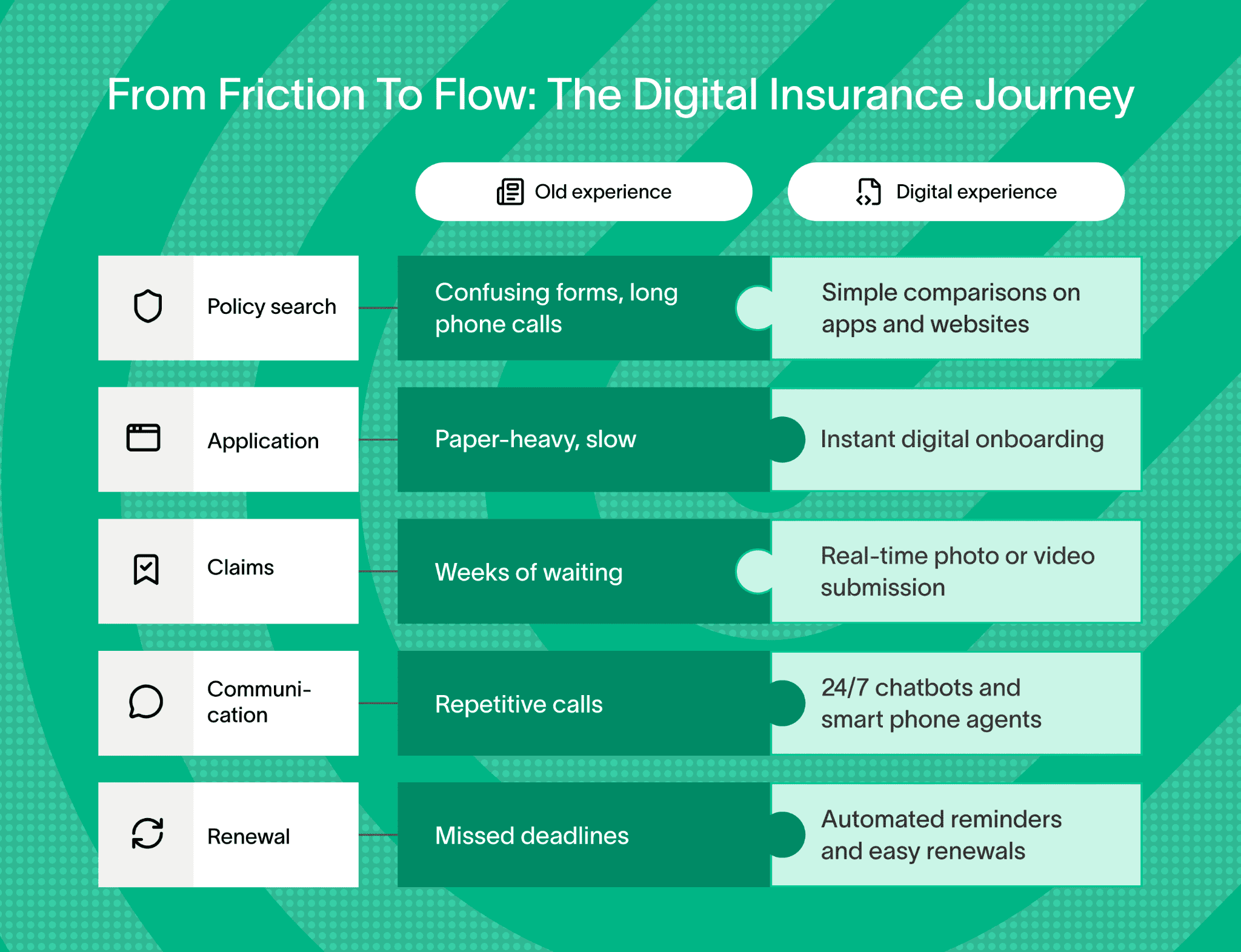 Today, it’s all about a digital-first, omnichannel journey. Instead of sticking to phone calls or in-person visits, you can now manage your policies through mobile apps, online portals, and self-service tools anytime, anywhere.