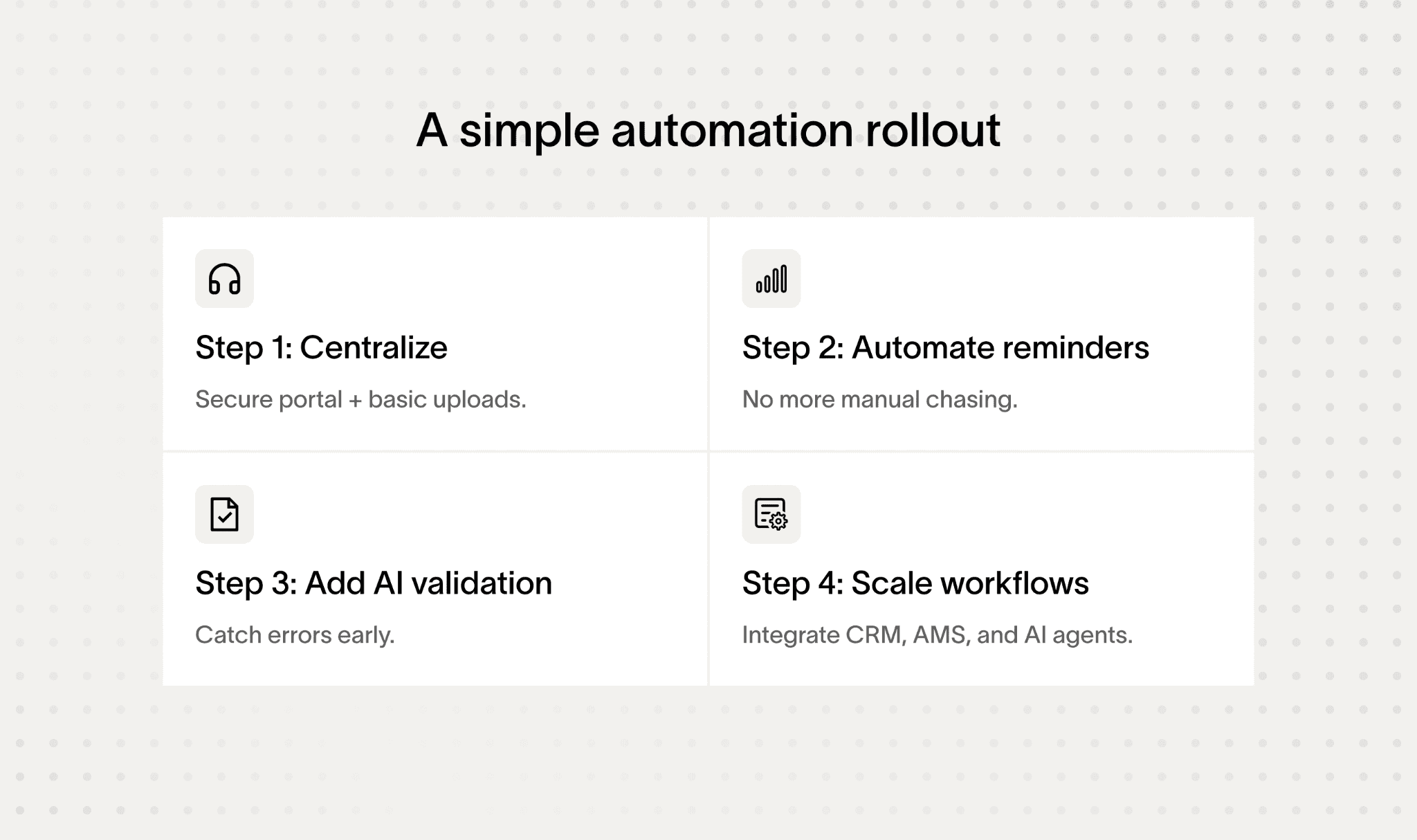 When you automate document collection in insurance, you want to get it right from the start. Otherwise, you’ll end up chasing your tail with incomplete automation and frustrated policyholders.