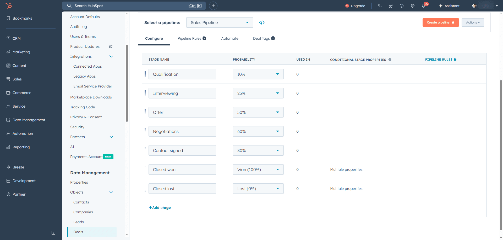 Next, customize your sales pipelines and deal stages so they reflect your actual sales process.