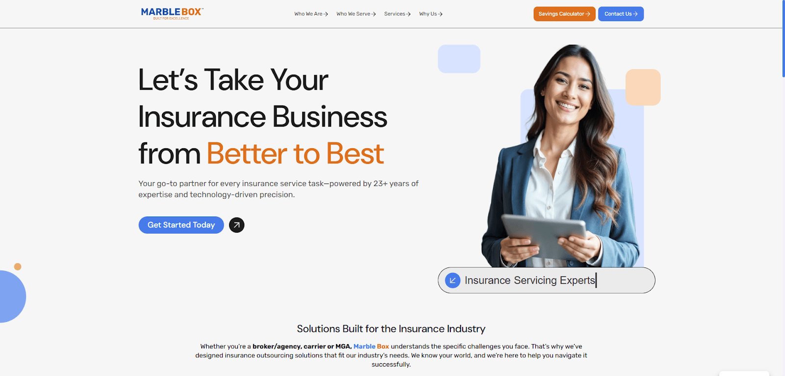 Marble Box is a company that specializes in outsourcing insurance services, helping agencies, brokers, carriers, and MGAs handle their day-to-day tasks efficiently.