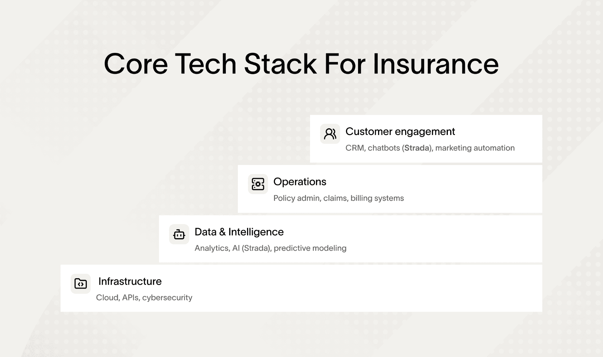 Here’s what a modern insurance tech stack looks like in practice: flexible, connected, and built for growth.