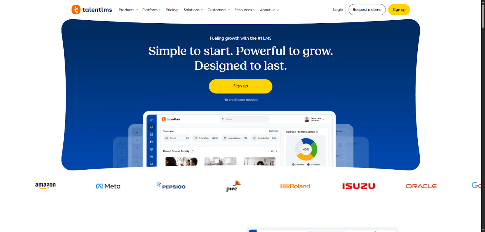 TalentLMS is a simple, scalable training platform that helps you upskill teams without complexity. You can sign up in seconds, build courses quickly, and launch training faster with AI-assisted creation.