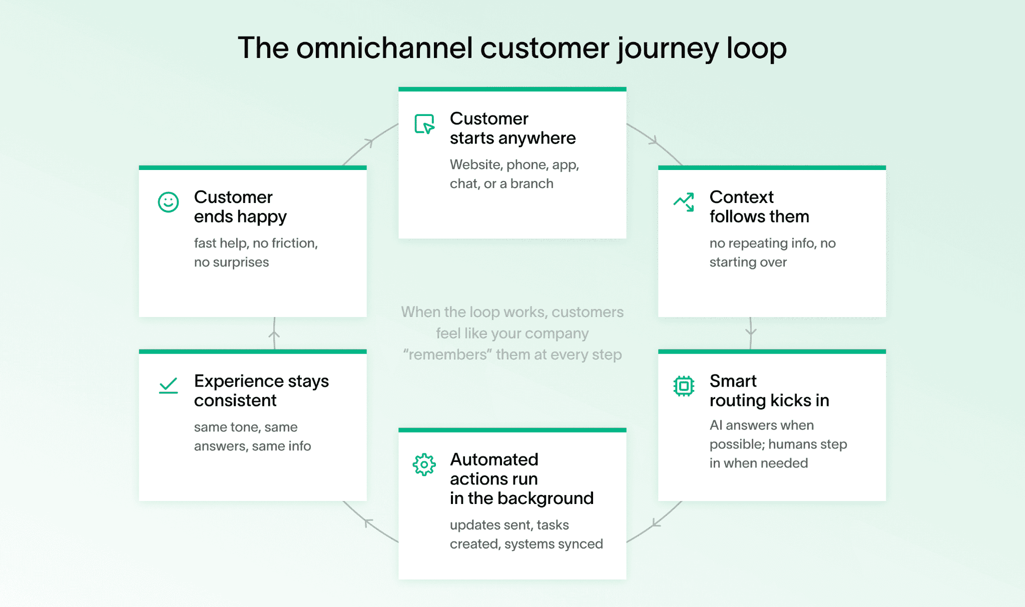 That means their journey feels seamless, with no hiccups when they switch from your website to a mobile app, call center, or even a physical branch.